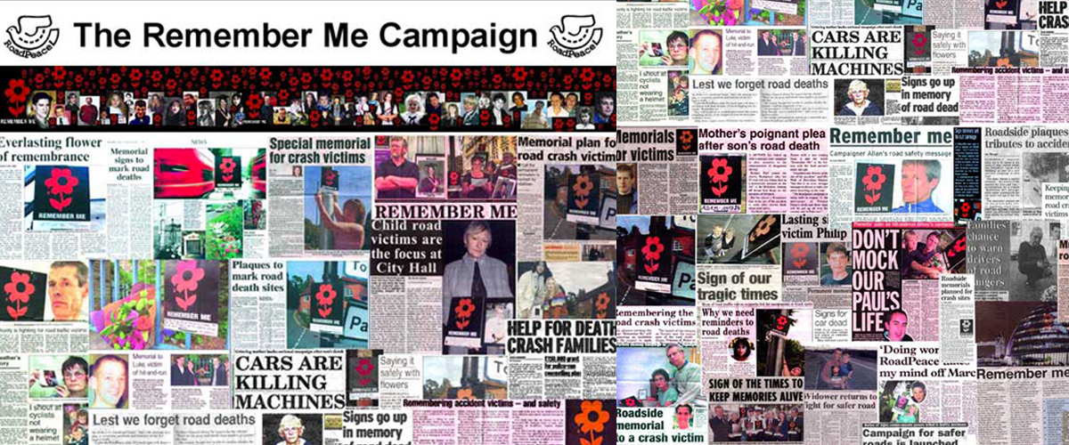 Since its launch, the campaign has received extensive TV, radio, press and social media coverage, over 4,000 Remember Me signs have been placed on Britain’s roads and the Weeping Flower image has been used to front various RoadPeace campaigns. These have included projecting the image on to City Hall in London and using it to highlight the connection between Safety Cameras and road deaths by TfL.