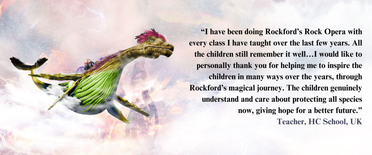 Acclaimed by teachers, educationalists and pupils, in the classroom, Rockford’s Rock Opera’s ecological story and lesson plans have reached more than 1,500,000 school children.